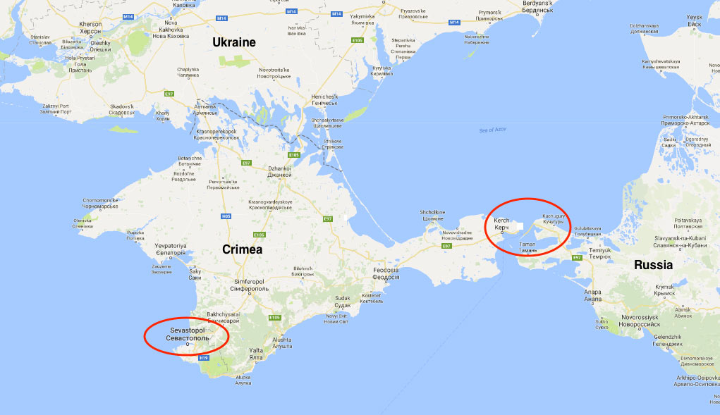 Как показано на приведенной ниже карте, Севастополь является стратегически важной базой российского военно-морского флота, а также единственной тепловодной базой России. После распада Советского Союза договор 1997 года с Украиной позволил России сохранить практически нетронутым свой Черноморский флот (с 15 000 человек личного состава в настоящее время) и арендовать базу в Севастополе (срок действия которого истекает в 2042 году).