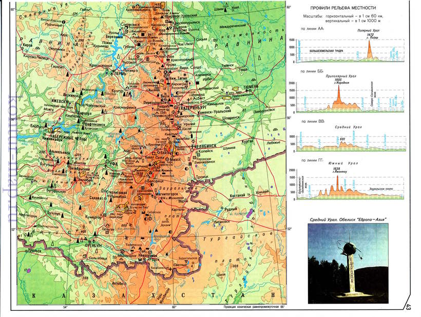 Уральские горы протянулись на 1 600 миль в Российской Федерации и Казахстане.Они служат одной из границ, отделяющих Азию от Европы. Самая высокая точка хребта — гора Народная в России, высотой 6217 футов. Он образует естественный горный массив, простирающийся от пустыни к северу от Каспийского моря до юга от арктической тундры. Название Урал дали русские XVI века после слов «скала» и «пояс» из-за рельефа местности и полезных ископаемых. На самом деле это название заслуживает, так как гора обладает значительными залежами ценных минералов, которые вносили свой вклад в российскую экономику с 18 века.Татары, башкиры, удмурты, коми-пермяки и русские населяют горный регион.