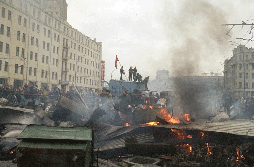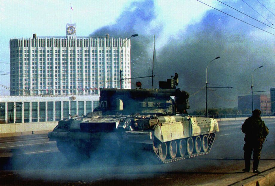 Политический кризис 1993 года между двумя ветвями российской власти — исполнительной в лице Бориса Ельцина и законодательной в лице парламента — Верховного совета (ВС) РСФСР, возглавляемого Русланом Хасбулатовым, 3-4 октября в Москве перешел в вооруженные столкновения и завершился танковым обстрелом резиденции парламента — Дома советов (Белого дома).