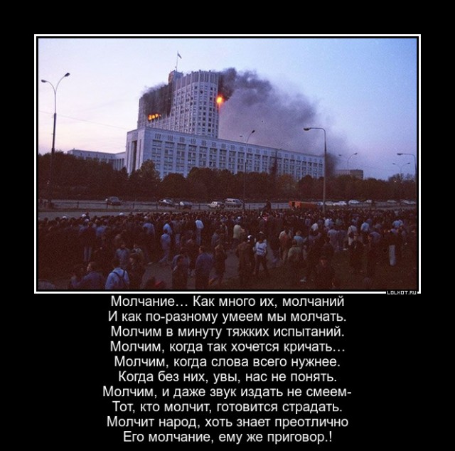 Сейчас, по прошествии времени, я могу сказать, что в те октябрьские дни опробовался вариант «цветной революции». Потому как провокаторы стреляли в одних, убегали, а потом стреляли в других. Для них было главное — пролить как можно больше крови. Развязать гражданскую войну…