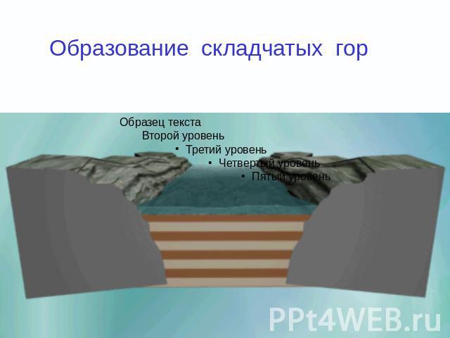 Всевозможные осадочные породы накапливались в прогибах земной коры, которые затем сминались и с помощью вулканической деятельности образовывались складчатые горы.