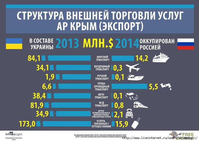 По данным украинской переписи населения в 2001 году на территории Крыма было 1 450 394 этнических русских, 576 647 украинцев и 245 291 крымских татар. В октябре 2014 года – после российской аннексии в Крыму насчитали 1 492 078 русских, 344 515 украинцев и 232 340 крымских татар. То есть количество украинцев сократилось с практически 24 до 15 процентов.