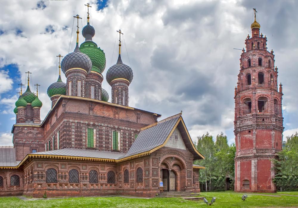 Как только вы приедете в музей-заповедник, вы не сможете не подняться на его колокольню, одну из самых высоких точек в низменном городе, и увидеть чудесный вид на весь Ярославль — изумрудный город. купольная церковь Ильи Пророка, позолоченные башни Успенского собора, Богоявленская церковь и жемчужина античной архитектуры — церковь Иоанна Крестителя. Этот 15-купольный храм, внесенный в список культурного наследия ЮНЕСКО, был построен в 1671–1687 годах на берегу реки Которосль в районе «Толчковская слобода», который в то время был самой большой и богатой частью города.