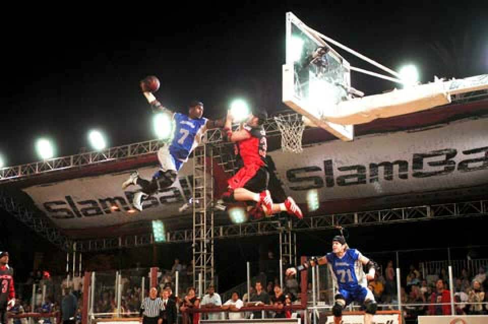 SlamBall является «близким родственником» игры в баскетбол и одним из самых захватывающих и динамичных видов спорта в мире. Отличие этой игры состоит в использовании покрытия: вместо паркета тут применяют батуты, помогающие участникам набрать необходимую высоту для слэм-прыжков (данков).