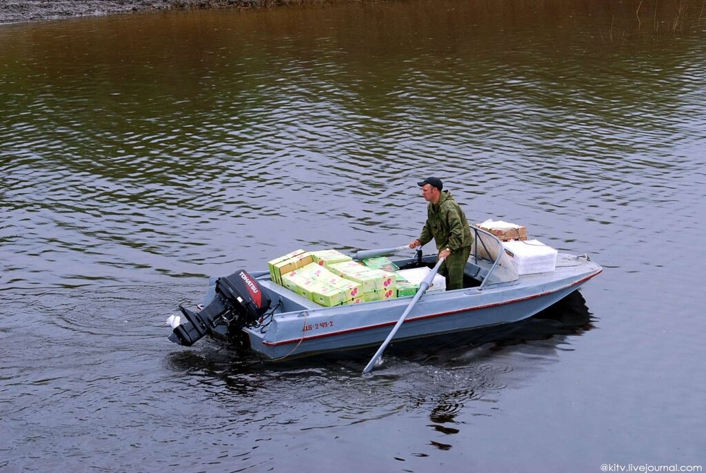 11 июля. Вытащили сеть, поймали рыбку в ухо. Печально, что уже прошел месяц путешествия, и отрадно, что все идет по плану, первый этап прошли. Гребешь уже уверенно, сильно и долго, мозоли затвердевают. Течение в Енисее бешено несёт. Перешли на левый берег, перекусили в садах Лесосибирска. Всего по Енисею прошло 48 км.Плывем по городу. В субботу все катаются на моторных лодках, скутерах. Проходим песок, куда загружаем уголь и дрова с маленьких барж на большие и тащим их на север. Поехал в город, скинул фото на флешку — свою и Волк, в компьютерном магазине Южный. Как оказалось, это была фатальная ошибка — после возвращения из похода флешка не определялась и не читалась, информацию восстановить не удалось. Поэтому фотографии из Усть-Илимска в Лесосибирск принадлежат Вольфу, Валентину Чугаю, поскольку мы практически параллельно снимали одно и то же.Но было потеряно много ценного. В магазине купила шоколад, ряженку, сгущенку, хлеб, булочки. Потом побежала за пивом, пошла короткой дорогой и заблудилась, пошла вверх по течению. Волк машет — быстрее! запан закроет! Плыть по Лесосибирску, индустриальный пейзаж, краны, волны. Лодки встречают нас, машут из рубки, в мегафон спрашивают, где и где. Потом надоело смотреть на утюг, мы прошли под правым берегом за отцом Маклаковским. Выпили ряженку с булочками и проплываем мимо села Городище, потом проезжаем деревню Каменск с церковью, вылезли и сфотографировали.Устали. Волк перегрелся, я побежал. Полно людей на пляже, купаются, отдыхают. Встали возле дороги за Каменским — сил больше нет. Пили пиво. Поехали ставить сеть — и тут вдруг появилась рыбная инспекция. Как мы ее раньше не замечали? Волк быстро спрятал под себя сеть, сделав вид, что просто скачет. Гречка отварная, лечь. Просто начали засыпать — на берегу слышались голоса рыбаков. Вылезли, поболтали. Про Волка даже слышали, его друг в прошлом году нашел на Нижней Тунгуске визитку Чугая.Мы говорили о путешествиях, зачем они нужны людям. Решили, что это заразная болезнь. Рыбаки пошли дальше, часа 3, светло.