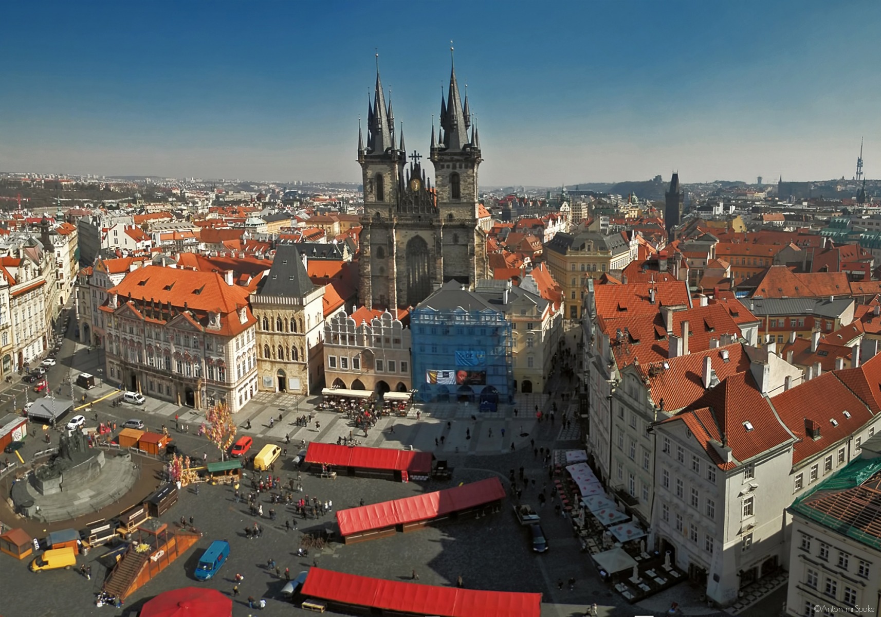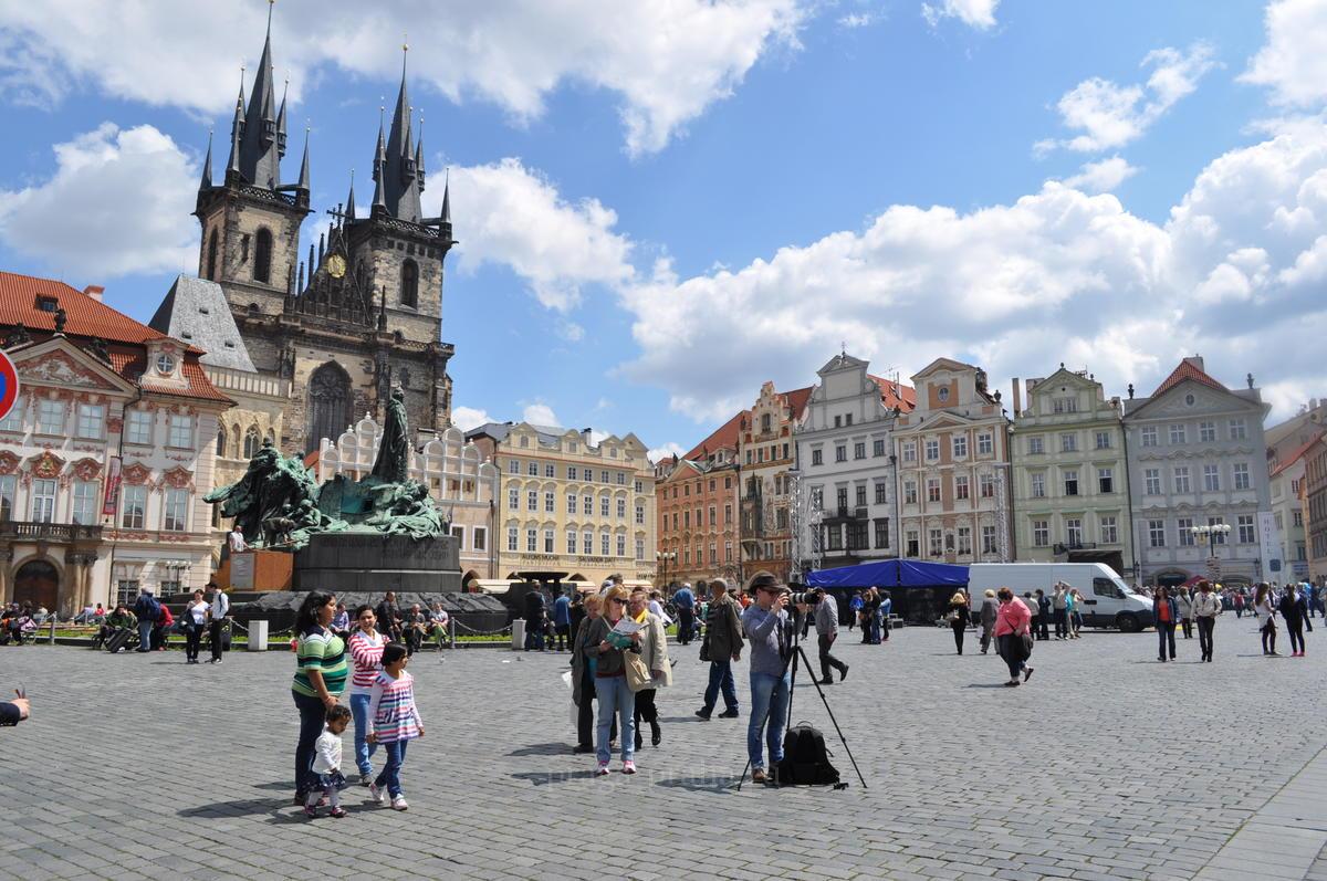 Причудливая готическая Тынская церковь возвышается над всем, словно напоминая туристам о том, что именно здесь происходило множество религиозных историй.