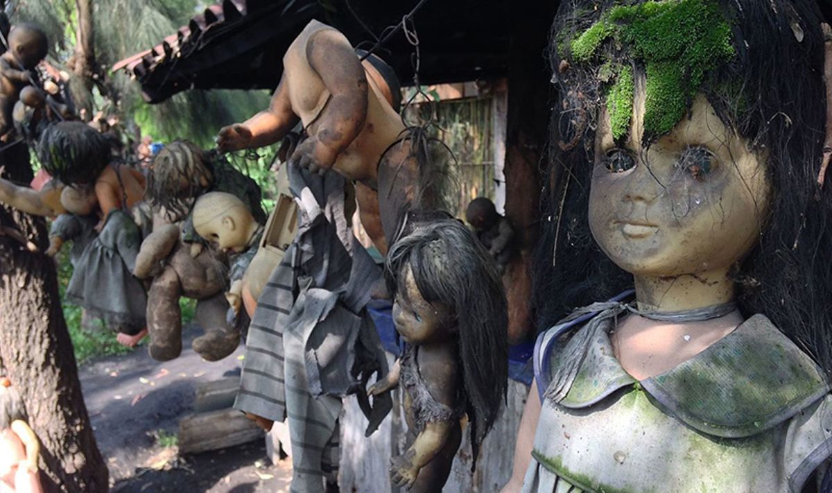 Казалось бы, что может быть безобиднее детских игрушек. Однако собрание из множества кукол на одном из островов в Мексике производят на туристов крайне тягостное и жуткое впечатление. Представьте себе огромную коллекцию пластмассовых пупсов всех мастей и размеров, которые развешаны на деревьях или прибиты к стволам. Когда-то здесь жил отшельник Джулиан Баррера и однажды на его глазах утонула маленькая девочка. На берегу канала осталась лишь ее кукла. Чтобы задобрить дух утопленницы отшельник в течение пятидесяти лет собирал кукол. Неживые обитатели заполонили весь остров.