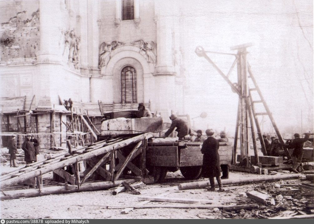 По распоряжению Сталина храм Христа Спасителя был взорван 5 декабря 1931 г. На месте храма предполагалось построить Дворец Советов. Однако планы эти были нарушены Второй мировой войной. А котлован, вырытый под фундамент Дворца, был использован для строительства открытого плавательного бассейна «Москва». Бассейн просуществовал 30 лет.