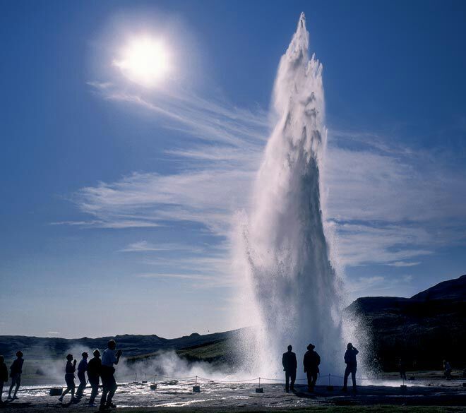 Геотермальная зона Исландии является домом для впечатляющих гейзеров, в том числе Гейзира и Строккура.