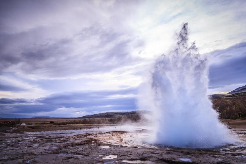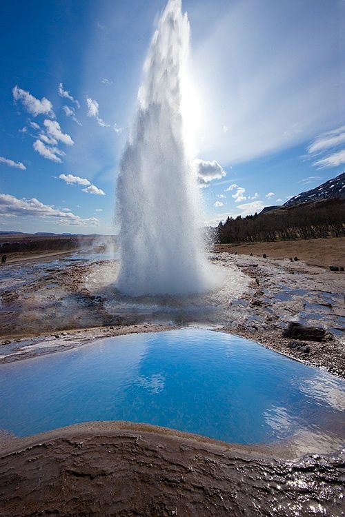 Хотя это и не самые высокие извергающиеся гейзеры, в этом районе насчитывается более 80 активных гейзеров, что представляет собой настоящее зрелище. - Великий Гейзер , расположенный на юго-востоке Исландии. Это самый большой гейзер в Исландии, извергается нечасто (2000, а затем 2016). Посмотрите ниже редкое наблюдение первого зарегистрированного гейзера в 1950 году.