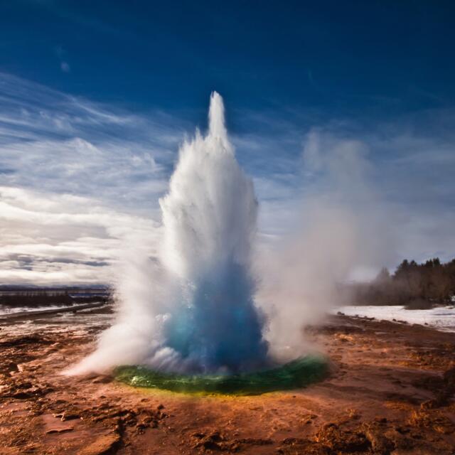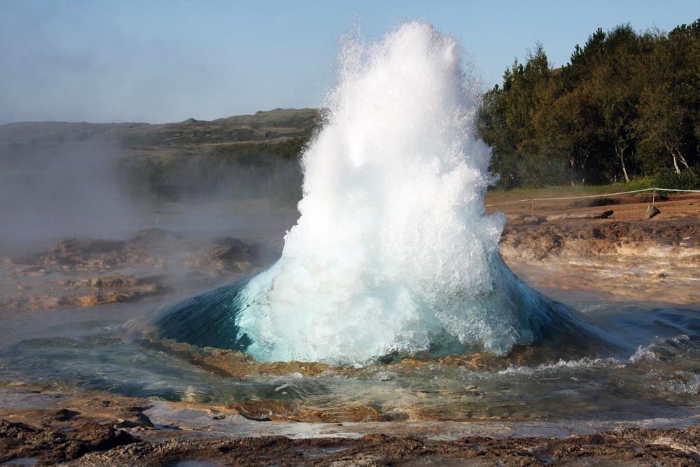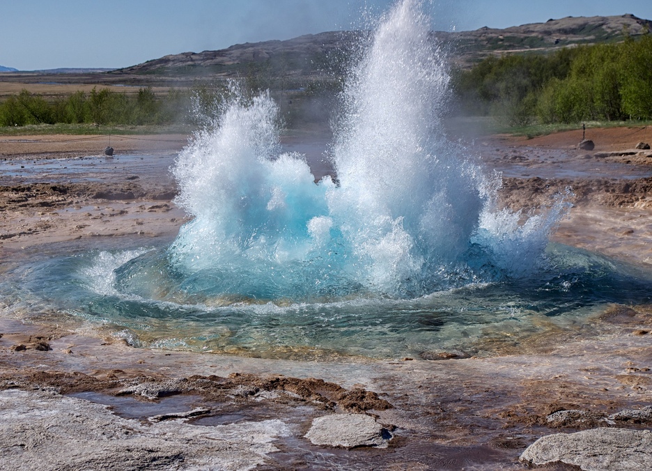- Гейзер Строккур . Этот меньший гейзер расположен сбоку от Великого гейзера и имеет тенденцию извергаться каждые 4-10 минут, что делает его активность туристической.