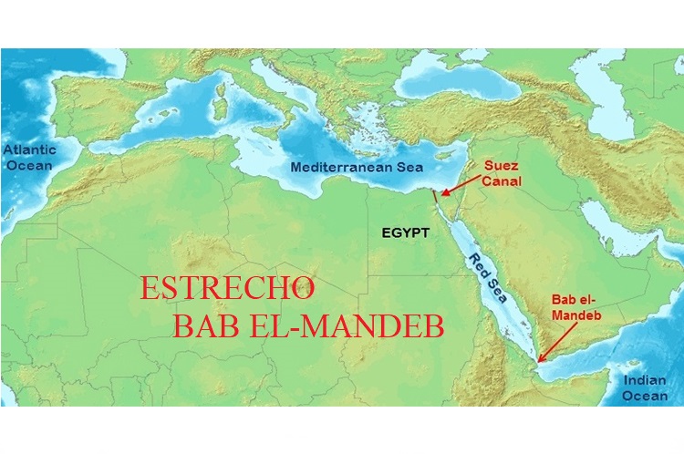 Находится на юге Красного моря и соединяет его с водами Индийского океана. Ширина пролива составляет 26-90 км. Водоем отделяет Африку от юго-западной части Аравийского полуострова. Восточный берег пролива входит в состав Йемена, а западный контролируют Эритрея и Джибути.