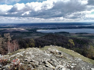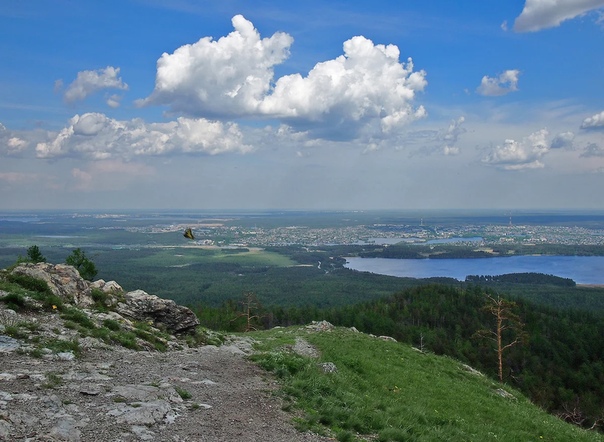 Минут за двадцать поднимаешься до первой вершины. Это — так называемый, малый Сугомак. Уже здесь обзору предстают великолепные пейзажи. Вот — Кыштым дымит в свои трубы.