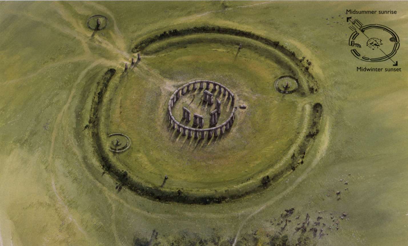 Теперь мы знаем, что Стоунхендж создавался не менее 400 лет. Первая фаза, построенная около 3000 г. до н.э., представляла собой простую круглую оградку из земляных работ, похожую на многие «изгороди» (священные ограды, обычно состоящие из круглого берега и канавы), встречающиеся на Британских островах. Около 2800 г. до н.э. внутри ограды были возведены деревянные столбы. Опять же, такие столбы не являются чем-то необычным — например, Вудхендж, который когда-то состоял из высоких столбов, расположенных серией из шести концентрических овальных колец, находится всего в нескольких милях к востоку.