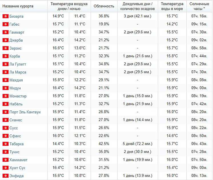 | Название курорта | Температура воздуха днем / ночью |