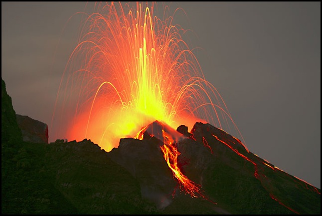 Извержения вулканов бывают самыми разными: от фонтанов лавы, растекающейся огненными реками и ручьями – до столбов и туч пепла, поднимающихся на десятки километров и превращающих день в ночь, с оглушительными взрывами от которых содрогается всё вокруг, с градом пемзы, камней и раскалённых обломков с вулканическими бомбами, и огромными смертоносными раскалёнными лавинами сметающими всё на своём пути, испепеляя всё живое и превращая окрестности в безжизненную выжженную пустыню.