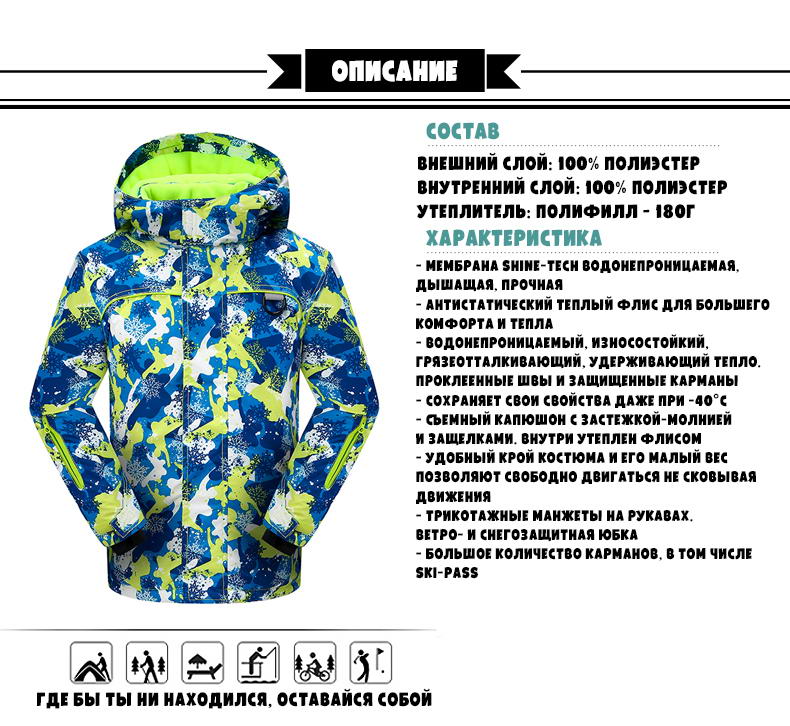 Куртки и комбинезоны из мембранной ткани могут окрашиваться в самые разнообразные оттенки, большой популярностью пользуются и камуфляжные расцветки.