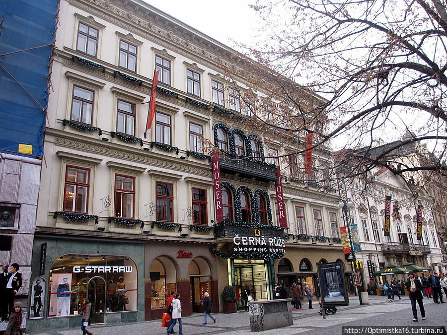 Бутики. Дорогие магазины не обошли Прагу стороной. Парижская улица от начала до конца усеяна дорогими бутиками, она приютила более 30 элитных магазинов одежды и аксессуаров, таких как Boss, Burberry, Cartier, Gas, Guess, Louis Vuitton, Max Mara, Prada и т.д.