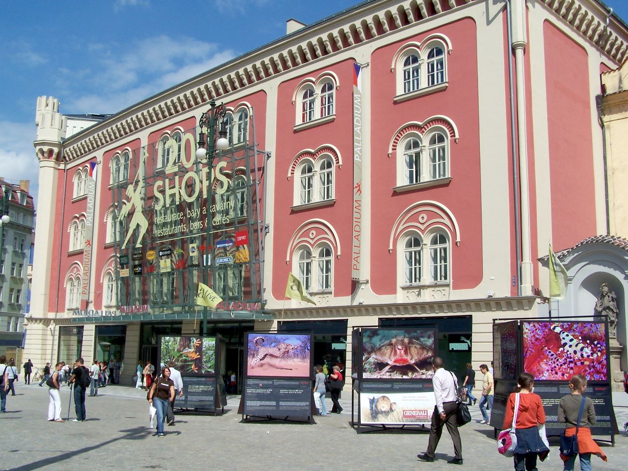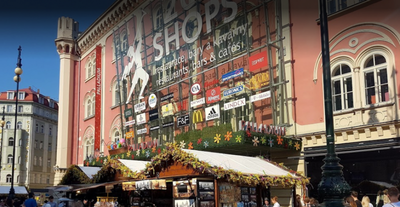 В сердце Праги, на площади Республики, находится торговый центр Palladium. Палладиум привлекателен не только своим расположением вблизи от туристических мест, но и великолепным старинным экстерьером здания, удачно вписывающимся в общий антураж центральных улиц и площадей. Так что, перед тем, как идти за покупками, вы можете осмотреть местные достопримечательности.