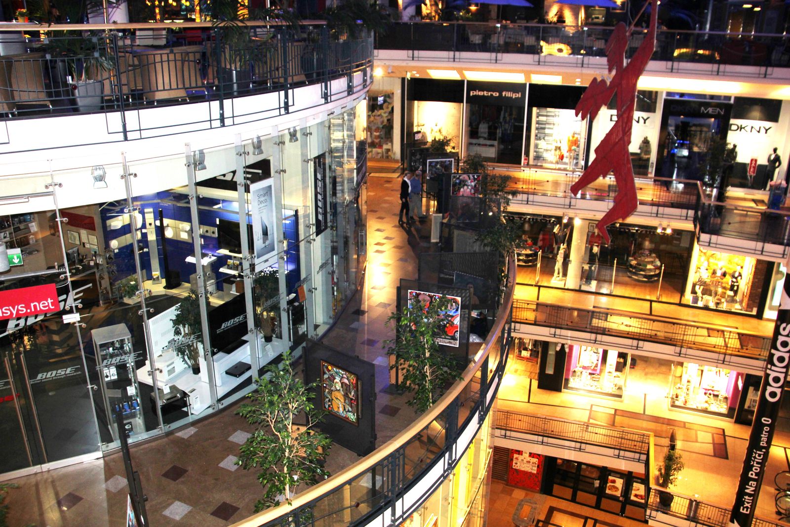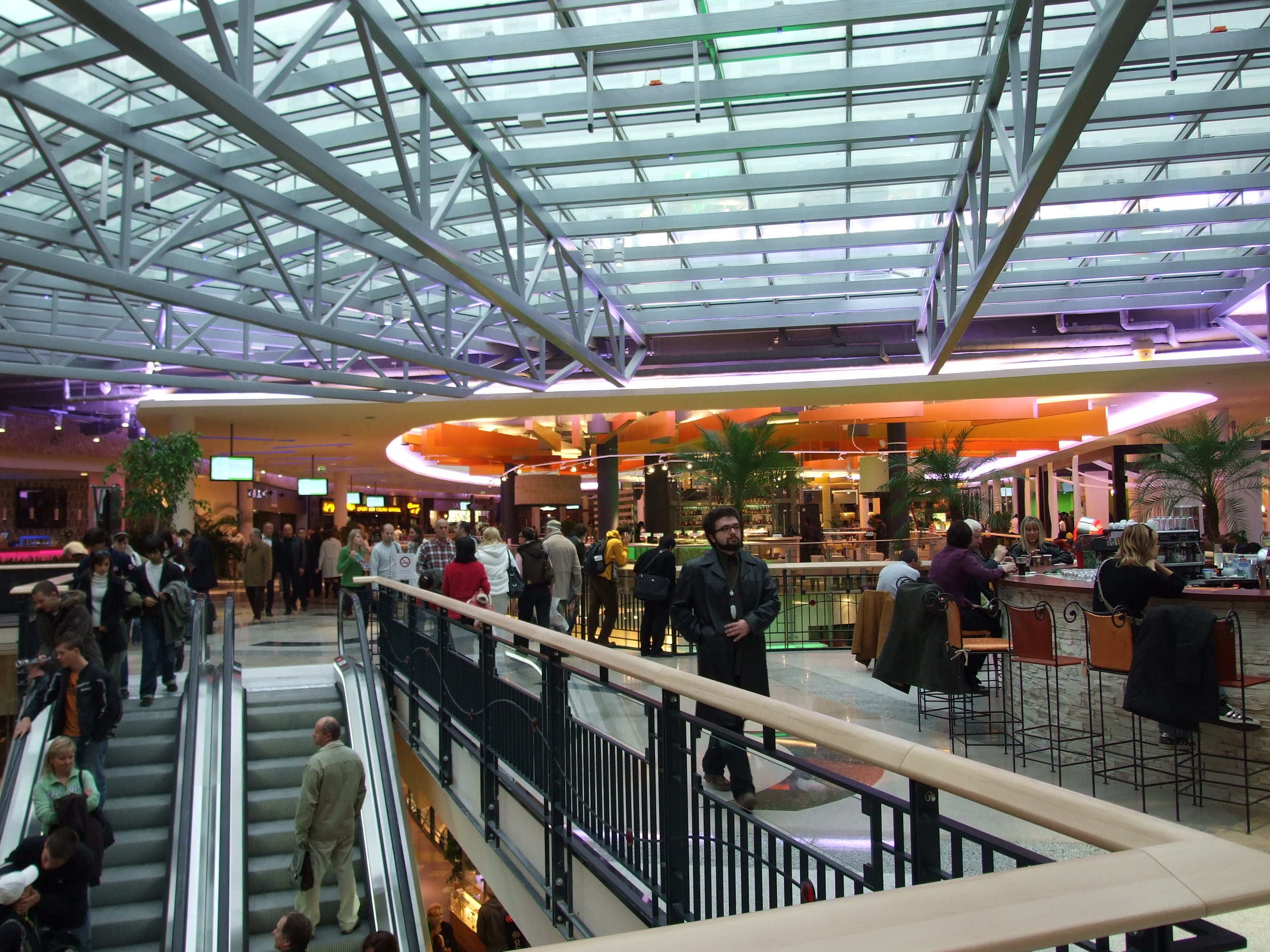 На каждом этаже находятся навигационные стенды, по которым легко можно ориентироваться в пространстве. Здесь расположены не только магазины миддл-уровня, но и элитные бутики. Помимо магазинов и ресторанов, в комплексе находятся: