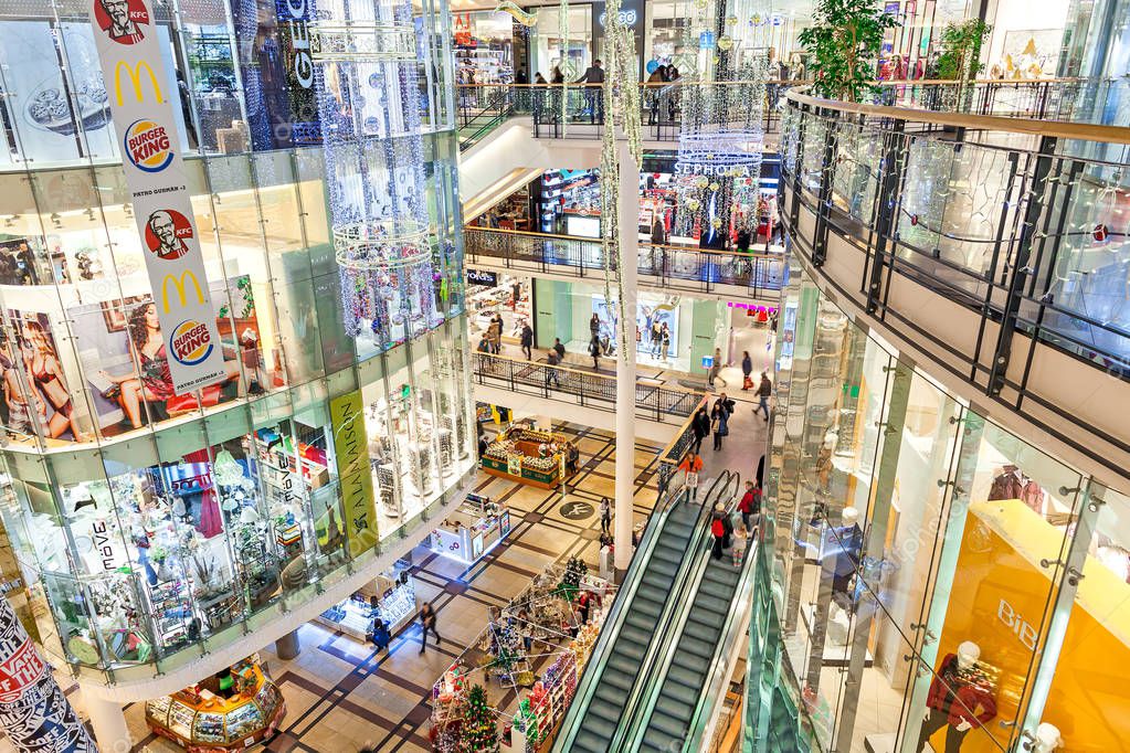 В крупных торговых центрах магазины работают по установленному торговым центром графику, обычно с 10:00 до 21:00, без выходных. Бутики, расположенные в приватизированных помещениях, обычно работают с 9:00 до 19:00 по будням, в субботу до 14:00, воскресение — выходной.
