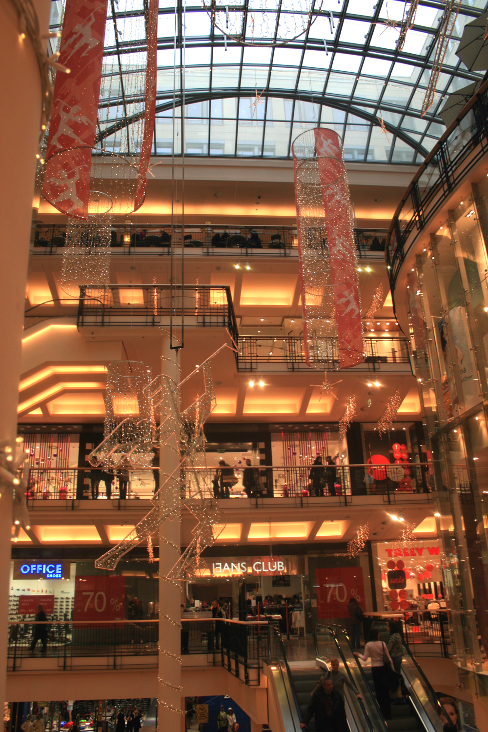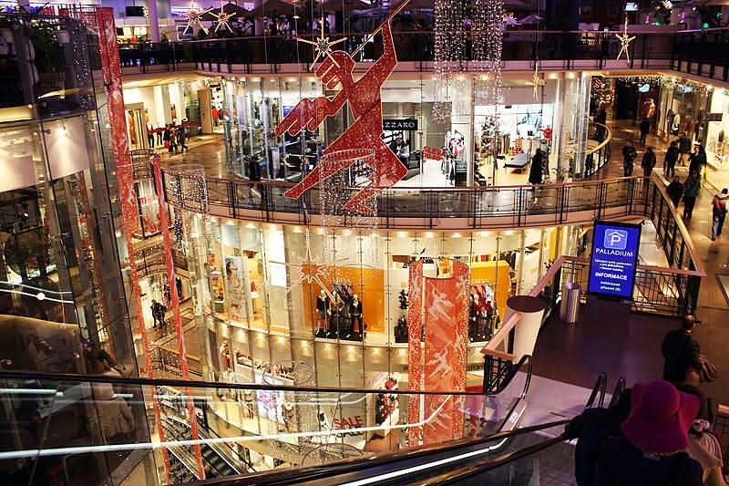 Ещё более удивительным оказывается то, что пятиэтажный красный особняк, больше похожий снаружи на королевский дворец, внутри имеет абсолютно современное и технологичное оснащение. Наполненный светом прозрачной крыши, с воздушными ярусами этажей, панорамными витринами и великолепной внутренней обзорностью, Палладиум привлекателен в любой сезон.