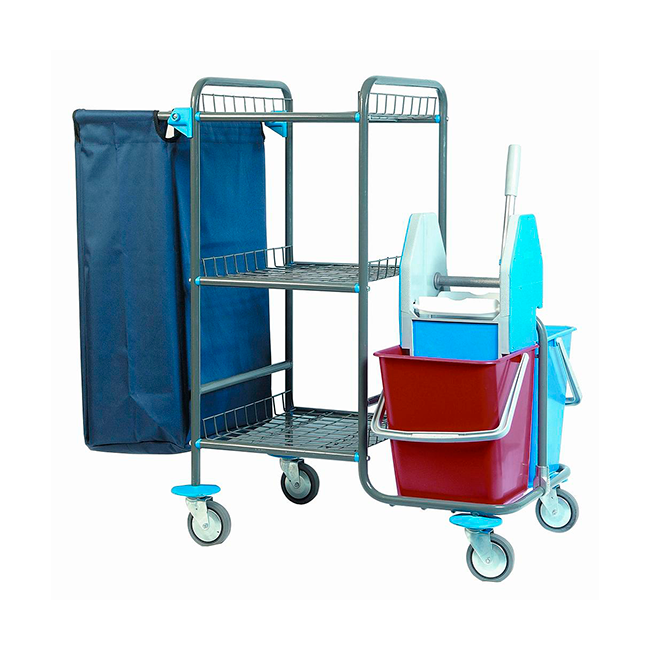 Тележка для уборки — очень эффективный инструмент для уборки, поскольку она способна перевозить большое количество расходных материалов и оборудования. Даже тележка для обслуживающего персонала или тележка для прачечной также может выступать в качестве уборочного оборудования, удаляя и перенося чистящие средства, грязное белье и мусор.