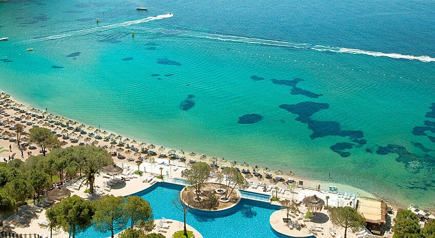 Многие отели специализируются именно на детском отдыхе: работает специальная детская кухня, на территории организованы аквапарки и детские игровые площадки. Курортная территория очень зеленая, она покрыта густыми сосновыми лесами.