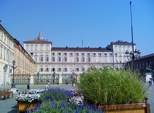 На севере находится изысканный фасад Палаццо Реале, королевского дворца, построенного для Карло Эмануэле II в середине 1600-х годов.