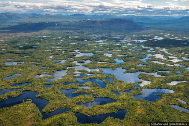 Плато Путорана представляет собой участок ступенчатых холмов с глубокими и широкими ущельями между ними. Здесь насчитывается более 25 000 озер и водопадов.