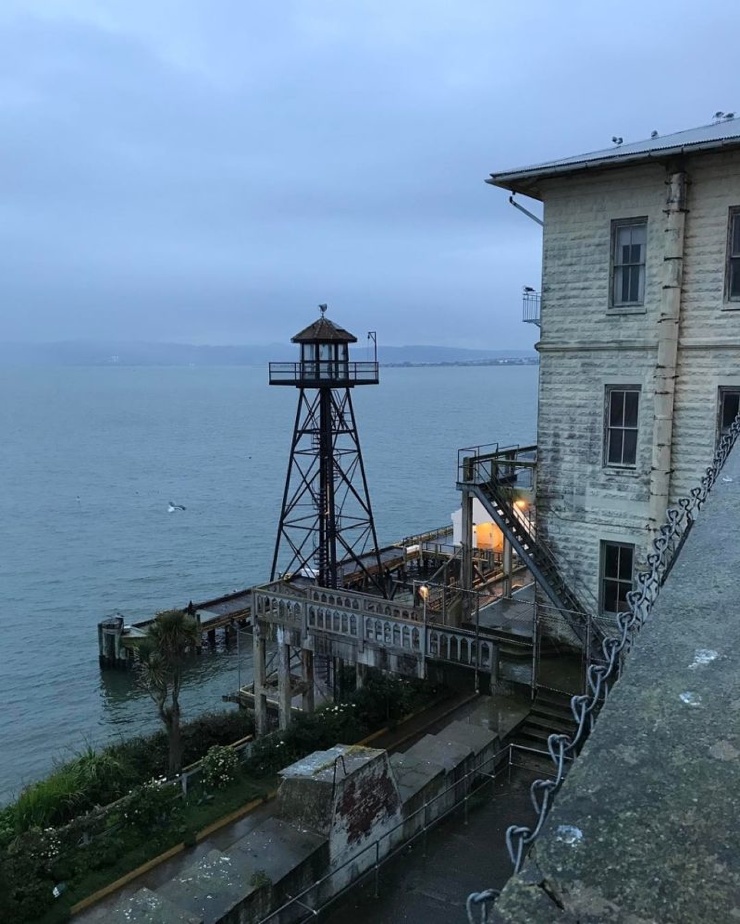 Глядя на восток, в сторону залива Сан-Франциско, легко представить остров как роскошный курорт. Но по мере того, как посетители продолжают свой тур, реальность камерного дома, одиночных камер и черной как смоль «дыры» быстро возвращает реальность Острова и его прошлого.