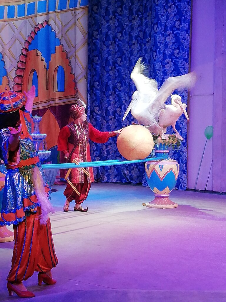 Продолжительность спектакля 1 час 35 минут вместе с антрактом. Но кого здесь только не было: и лисички, и слон, и бегемот, и козы, и собаки, и шимпанзе, и кенгуру и много-много кто еще. Но я никогда в жизни не видела дрессированных воронов. Для меня это было большим удивлением. Ну и конечно же знаменитый енот-полоскун.