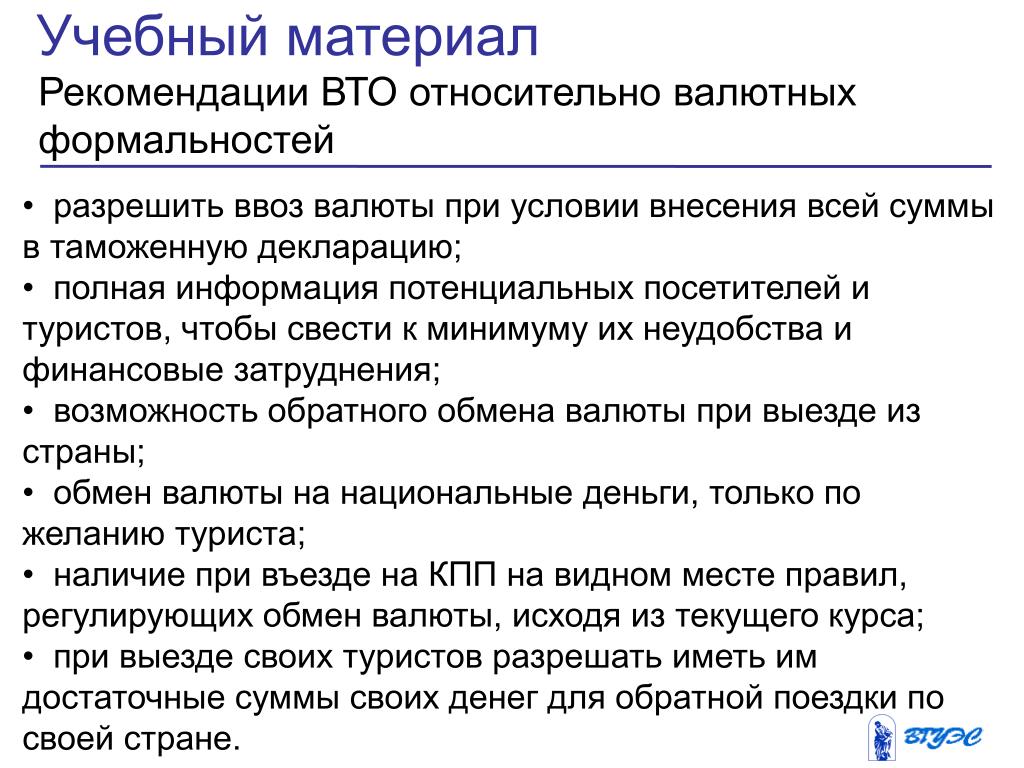 - Понимать роль Всемирной таможенной организации и Всемирной торговой организации (ВТО)