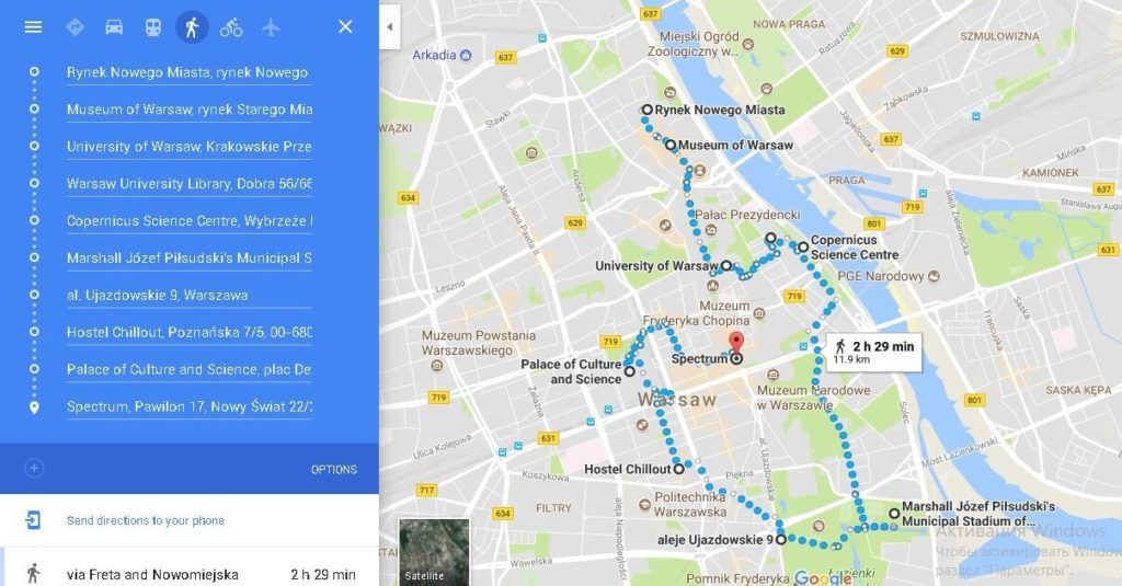 Поиск сервисов, учреждений и достопримечательностей на карте Варшавы