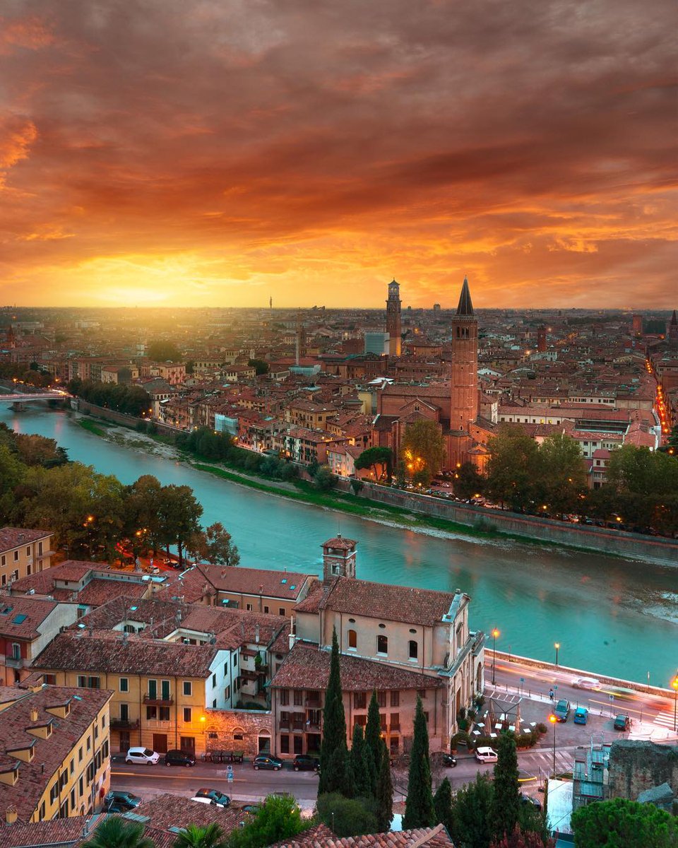 Верона, расположенная на берегу реки Адидже, представляет собой исторический, энергичный город, наполненный итальянским шармом. С легко проходимым старым городом и красивые улочки для прогулок, этот самый романтичный из итальянских городов заставлял нас желать мы могли бы остаться намного дольше. Вы можете легко провести здесь длинные выходные, взяв ваше время, чтобы насладиться его красивыми площадями, потрясающей архитектурой и невероятными еда и вина из региона Венето — недалеко от берега озера Гарда.