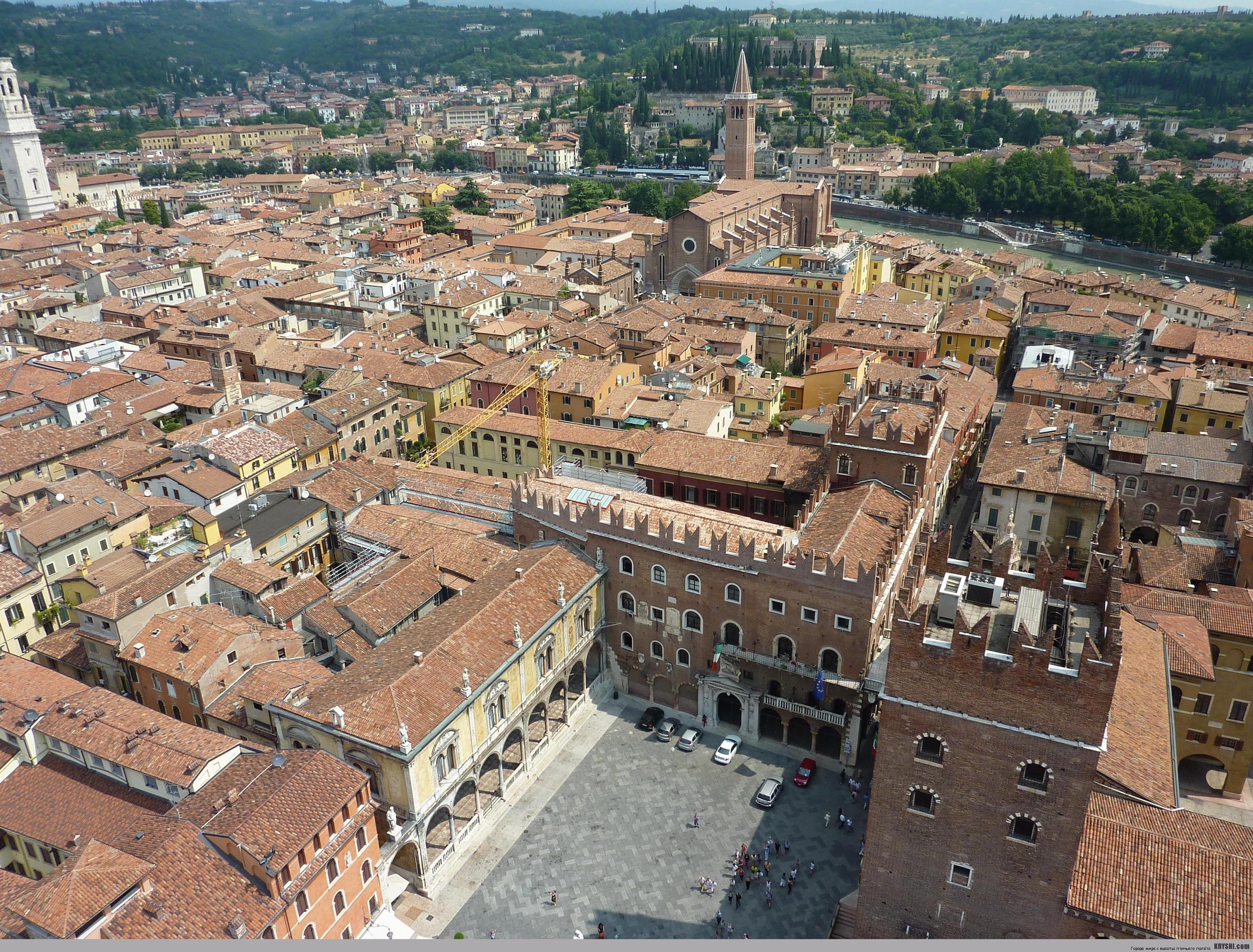 Скульптуры изображают веронцев, ставших известными не только в Италии, но и за ее пределами. - Дворец Правосудия украшает 83-метровая башня Ламберти, интересная для туристов своей крохотной обзорной площадкой.