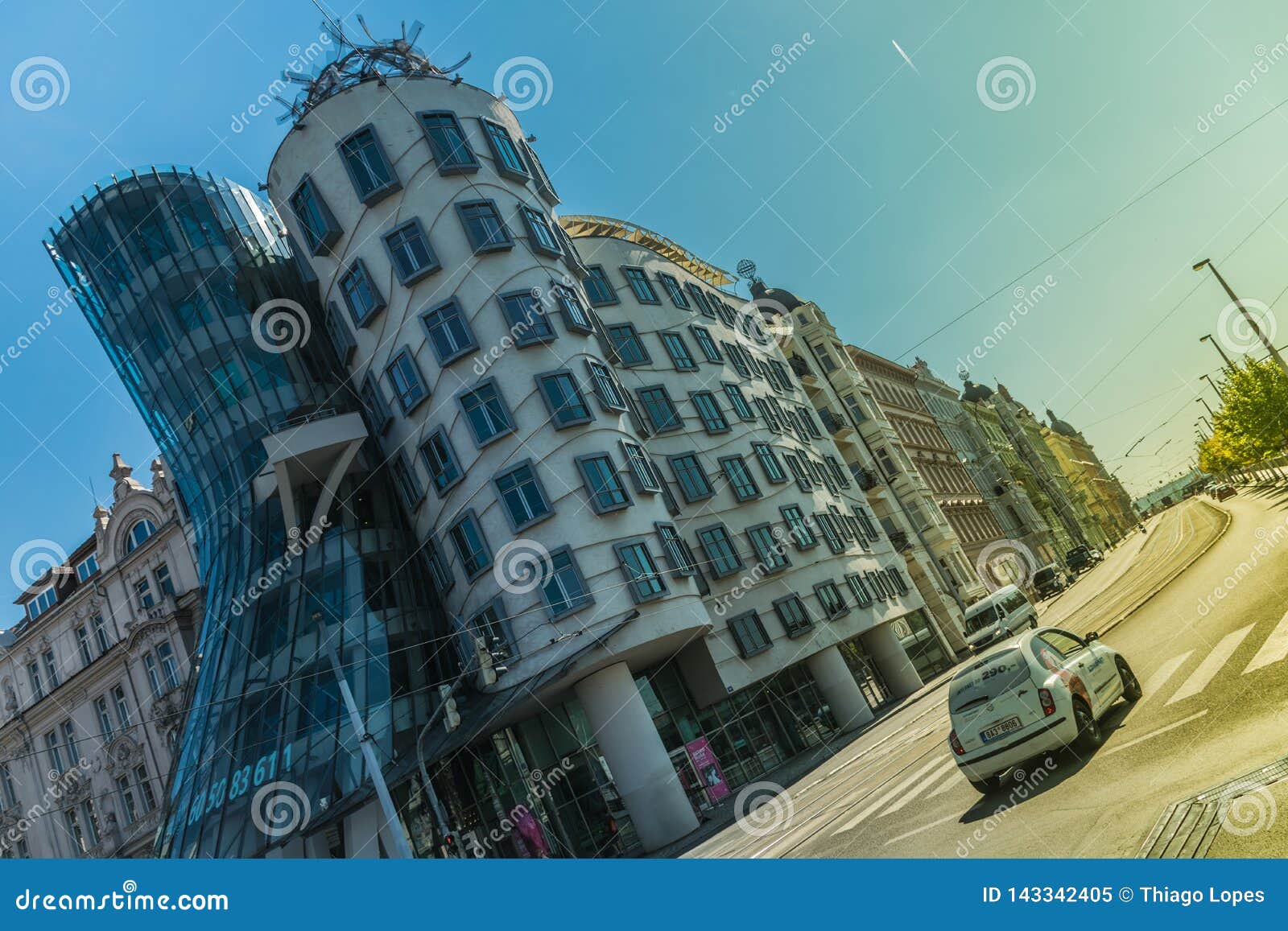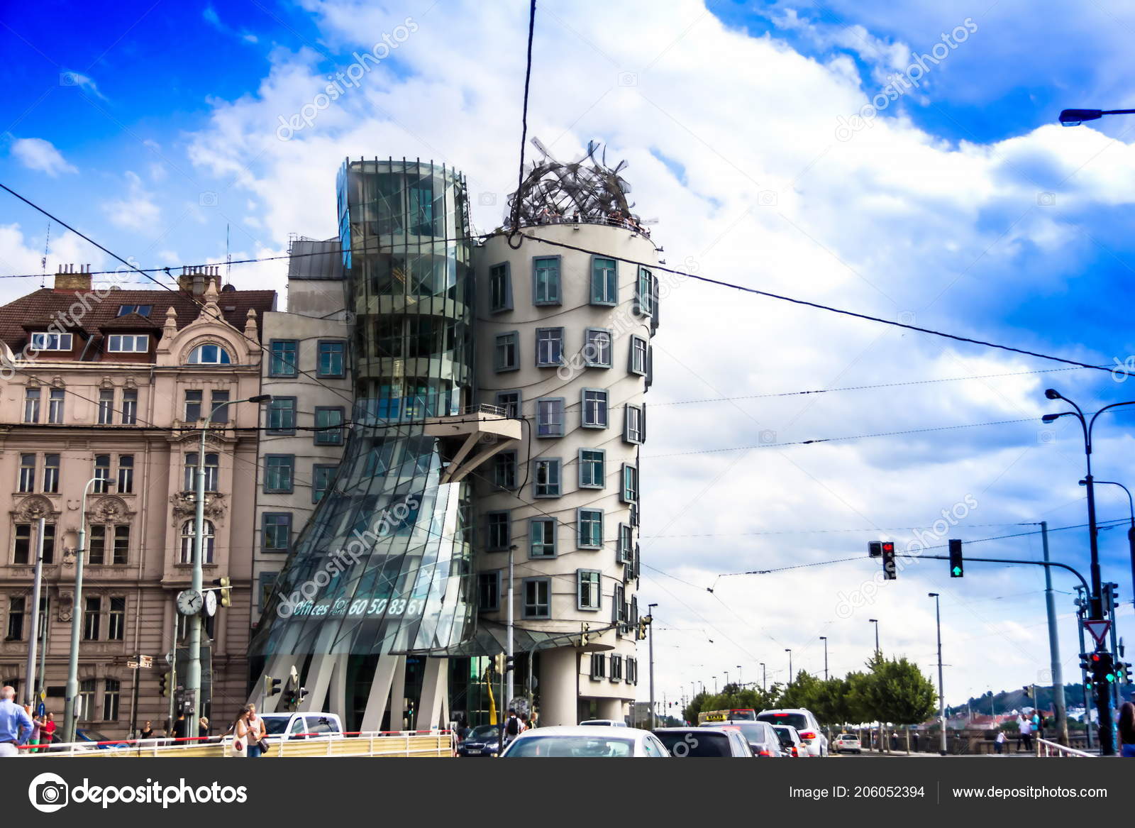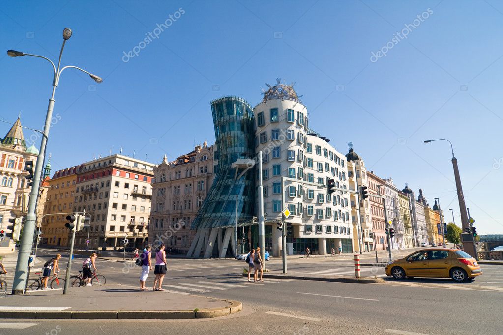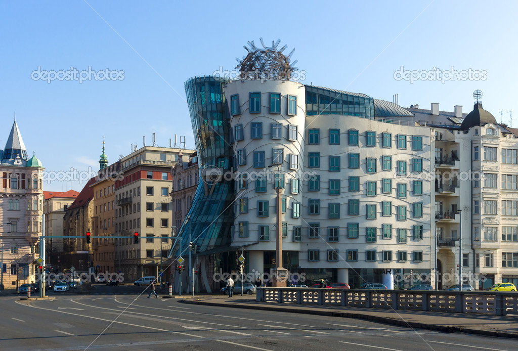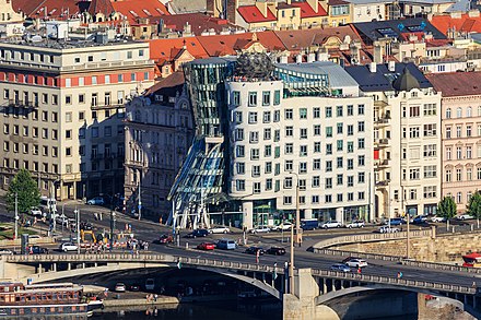 Среди самых удивительных современных зданий, на набережной, на уровне Йирaскува моста, возвышается Танцующий дом, спроектированный чешским архитектором Владо Милуничем и канадским архитектором Фрэнком О. Гeри для одной страховой компании.