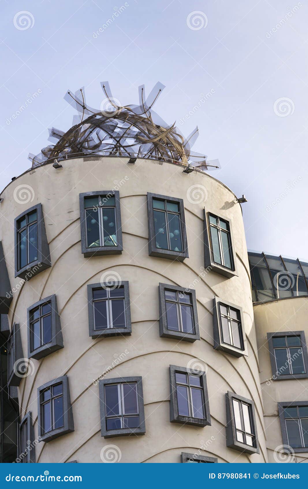 Архитектурное сооружение имеет сложную форму и состоит из двух башен, плотно прилегающих одна к другой. Башню с изгибом называют Джинджер, а прямую – Фред. Оригинальный макет создавали с помощью технологий компьютерного моделирования. После многократных проверок расчетов и схем был дан старт строительным работам. Своим названием Танцующий дом обязан одному из авторов – Владо Милуничу, который и придумал эффект танца. Здание, шаткое на вид, на самом деле имеет прочную основу. Внутри расположены офисные помещения, а наверху ресторан с панорамным видом на Прагу.