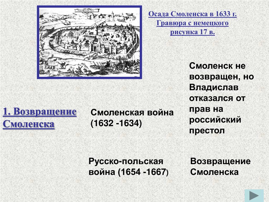 На долгие годы борьба за возвращение Смоленска стала основной задачей возрождающего и набирающего силу после смутного времени Российского государства.
