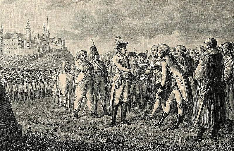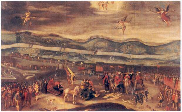 Виктор Марков; «И они, видя такое дело, не желая терять свои имения, практически все перешли на сторону русского царя. И только 35 самых знатных шляхтичей и немецкие полковники ушли из Смоленска. И там, где у нас сейчас площадь Победы, состоялась эта церемония. Там, где сейчас подземный переход, стояла огромная квадратная башня с воротами, Молоховская. Перед ней был крепостной ров и земляной вал насыпан. И вот из этих ворот выезжали польские полковники и воевода Обухович. Они подъехали к русскому царю, это примерно где-то в районе современной «Юноны». Там был поставлен шикарный царский шатер. Перед шатром в окружении свиты стоял царь Алексей Михайлович. Польские полковники и воевода подъехали к нему, спешились с коней, низко поклонились в ноги русскому царю и к копытам его коня сложили свои знамена. А потом в сопровождении русского конвоя их проводили до польской границы и отпустили. Все остальные шляхтичи перешли на службу к русскому царю».