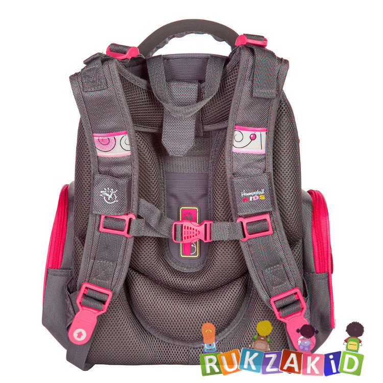 Спинка рюкзака оснащена поясничной поддержкой, а лямки — поперечным съёмным ремешком для фиксации.