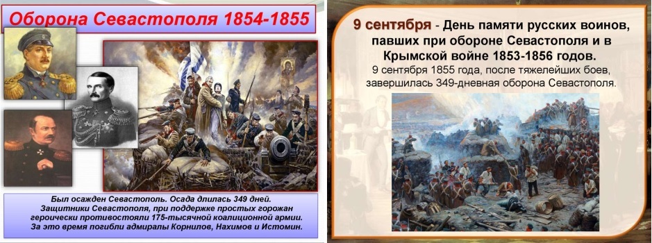 В октябре 1854 г. началась 11-месячная героическая оборона Севастополя под руководством В.А. Корнилова, П.С. Нахимова и В.И. Истомина. Ее осуществлял гарнизон крепости и морские экипажи, снятые с затопленных в Севастопольской бухте нескольких устаревших кораблей.