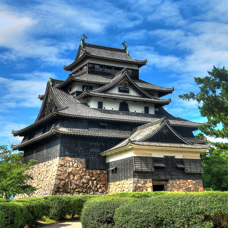 Особенность: окруженный рвом с водой замок с самой древней в Японии деревянной пятиэтажной цитаделью.