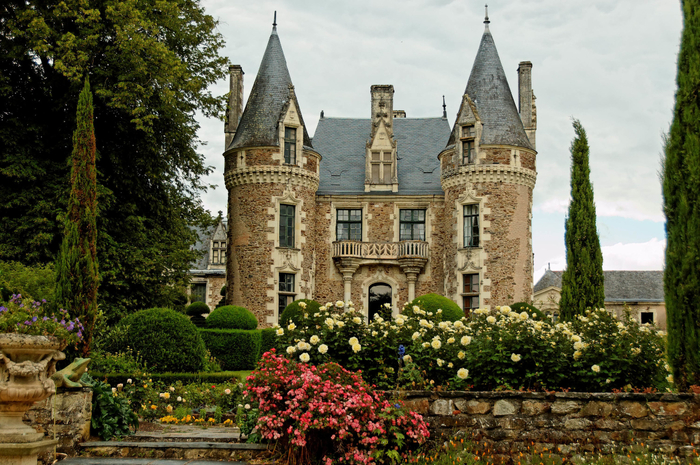 Старинный замок в парфе, трансформированный в резиденцию 19 века, красивые украшения на улице, в обход!