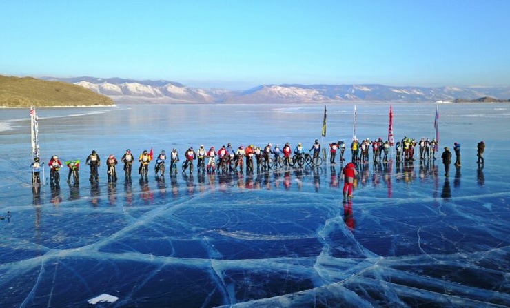 Между серединой января и серединой апреля , когда лед наиболее прочный, люди ходят пешком, катаются на велосипедах, катаются на коньках, даже едут через озеро, возможно, останавливаясь, чтобы пробурить лунку и немного порыбачить или полюбоваться некоторыми из красивые образования на ледяном щите, которые образуют кристаллизовавшиеся пузыри и волны. На берегу, в поселках типа Листвянки, можно покататься на традиционных санях, запряженных лошадьми, тройкой , с бутылкой водки на двоих; полюбоваться деревянными церквями и домами, покрытыми снегом; прокатитесь на собачьей упряжке или снегоходе и согрейте моллюсков в парной баня , возможно воздействуя на кровообращение легким похлопыванием березовой ветки.