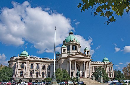 Строительство здания Национального Собрания в Белграде началось в 1907 году по проекту архитектора Иоанна Илкича. Однако, после смерти Иоанна Илкича строительство прекратилось, т.к. были потеряны чертежи. Только сын этого архитектора смог достроить Национальное Собрание в 1936 году.